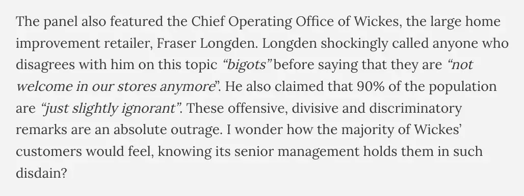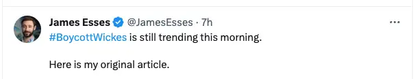 Well, no, having a look on Twitter we can see that #boycotwickes is trending.