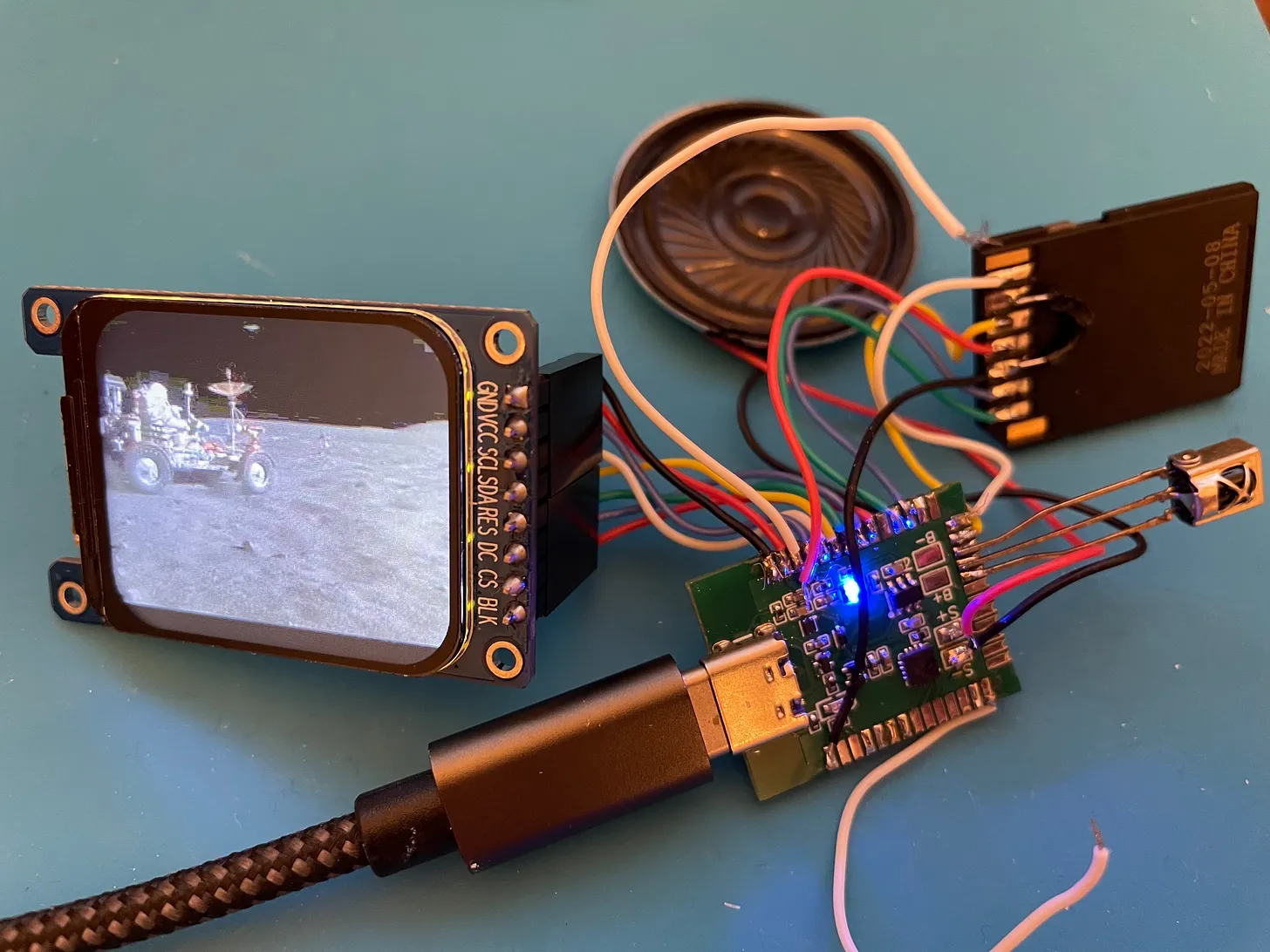 There are a couple of options for presenting the video frames - we could send completely uncompressed image data that would be ready to display directly on the screen. The screen I’m using is 280x240 pixels and each pixel is RGB565 - that’s 5 bits for red, 6 for green and 5 for blue.