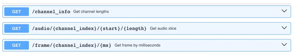 Our server just needed three endpoints, one to get audio data, another to get a frame of video data, and finally an endpoint to get meta data about the available videos.